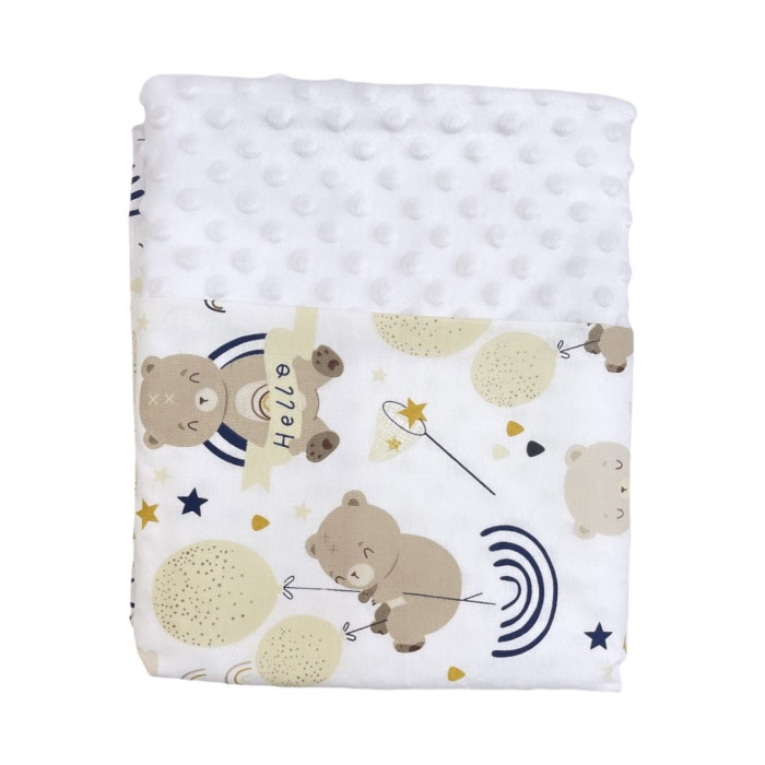 Плед плюш, без утеплення Ведмедик Бежевий/ Білий плюш пупиришка 100/80