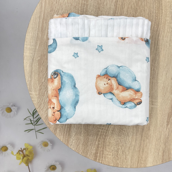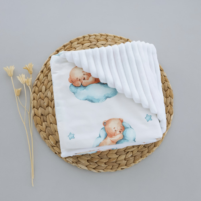 Плед плюш, без утеплення Ведмедик на хмаринці Бірюзовий /Білий плюш 100/80