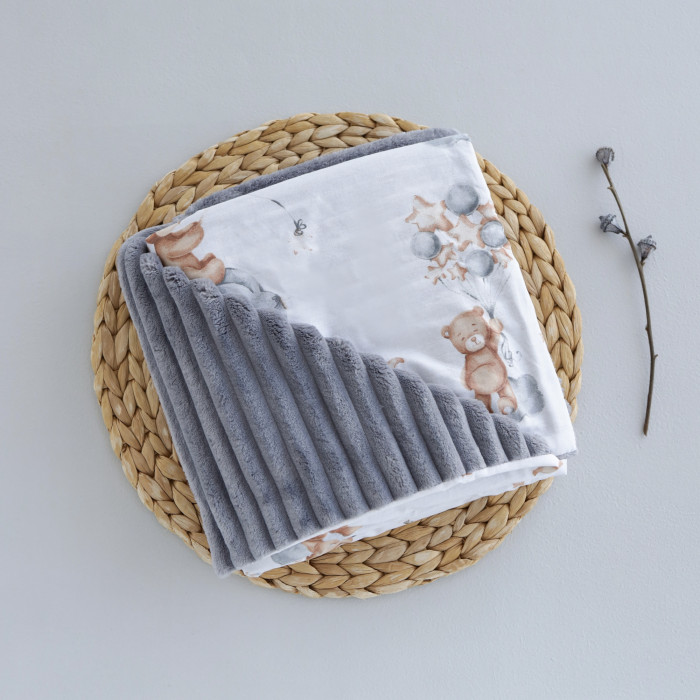 Плед плюш, без утеплення Ведмедик з кульками /Сірий плюш 100/80