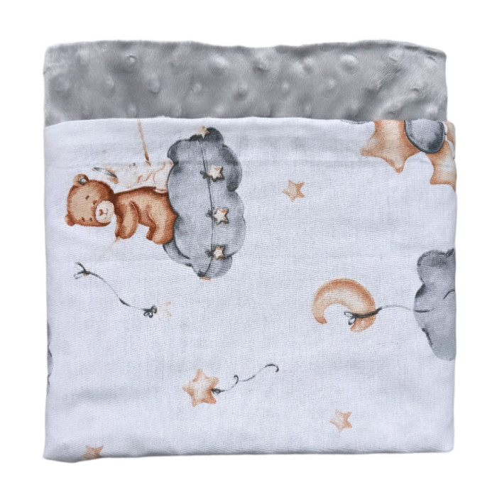 Плед плюш, без утеплення Ведмедик з кульками /Сірий плюш пупиришка 100/80