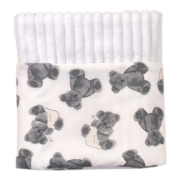 Плед плюш, без утеплення Ведмедики Сірий/ Білий плюш 100/80