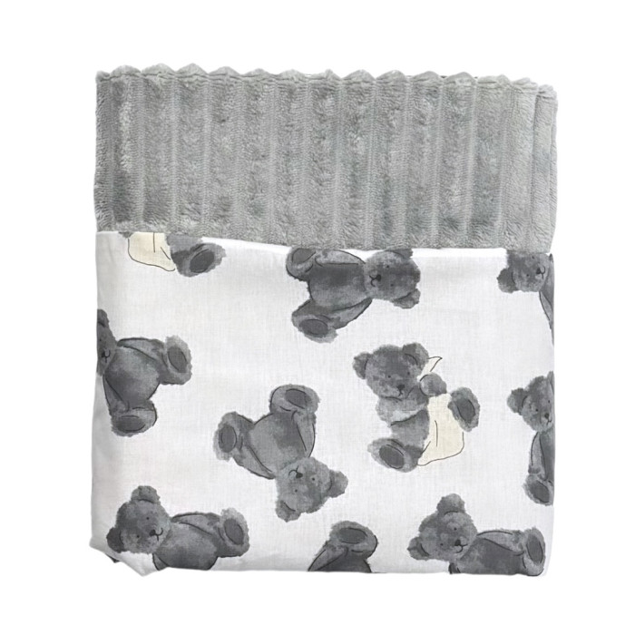 Плед плюш, без утеплення Ведмедики Сірий/ Сірий плюш 100/80