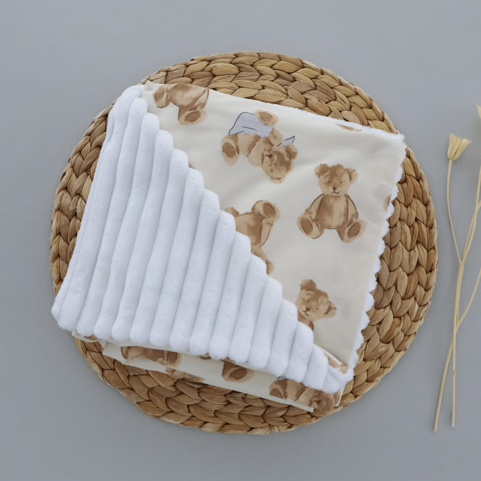 Плед плюш, без утеплення Ведмедики з хусточкою Бежевий/ Білий плюш 100/80