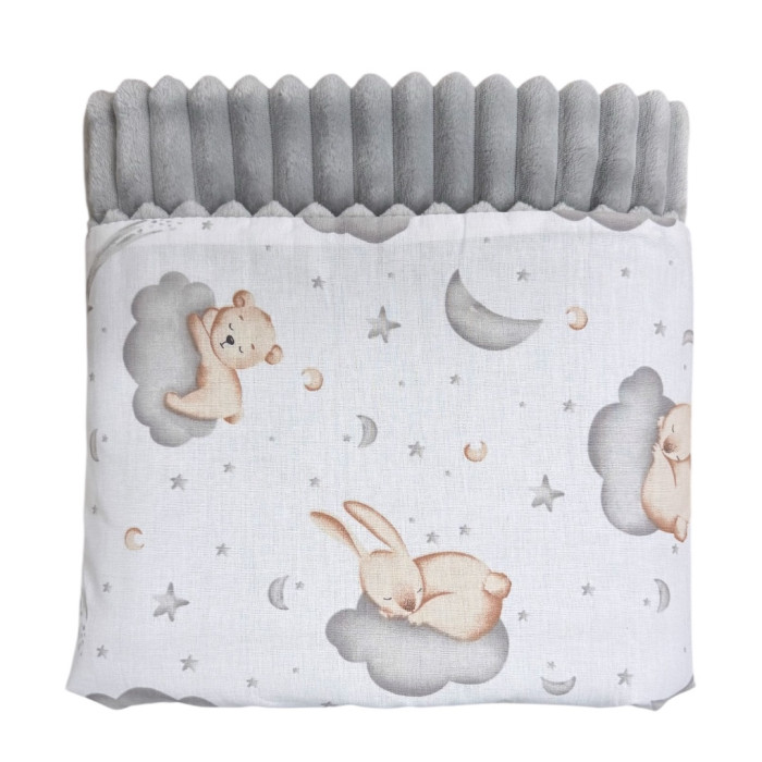 Плед плюш, без утеплення Звірята на хмаринці /Сірий плюш 100/80