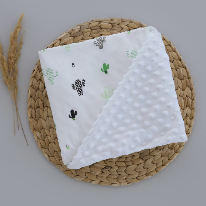 Плед плюш Кактуси / Білий плюш Пупиришка 100/80