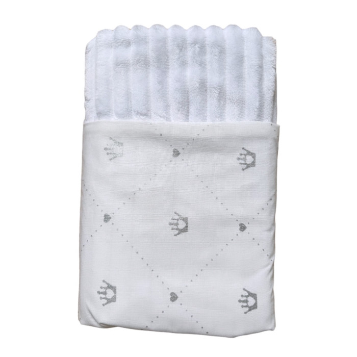 Плед плюш Корони Срібний (гліттер) / Білий плюш 100/80