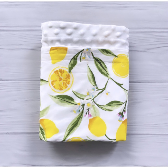 Плед плюш Лимони / Білий плюш Пупиришка 100*80