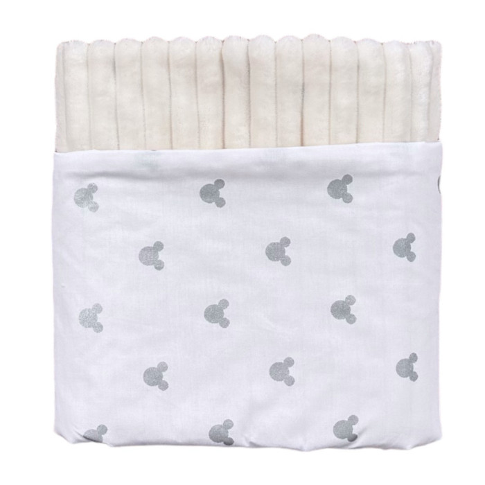Плед плюш Міккі Срібний (гліттер)/ Молочний плюш 100/80