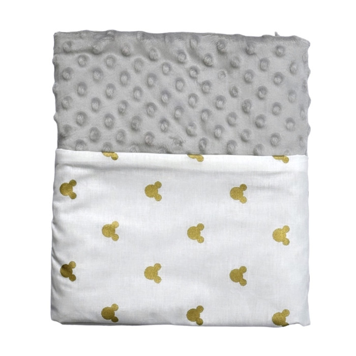 Плед плюш Міккі золото (гліттер)/ Сірий плюш пупиришка 100/80