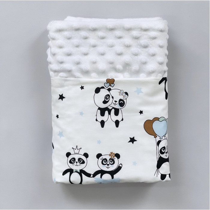 Плед плюш Панди Блакитний / Білий плюш пупиришка 100/80
