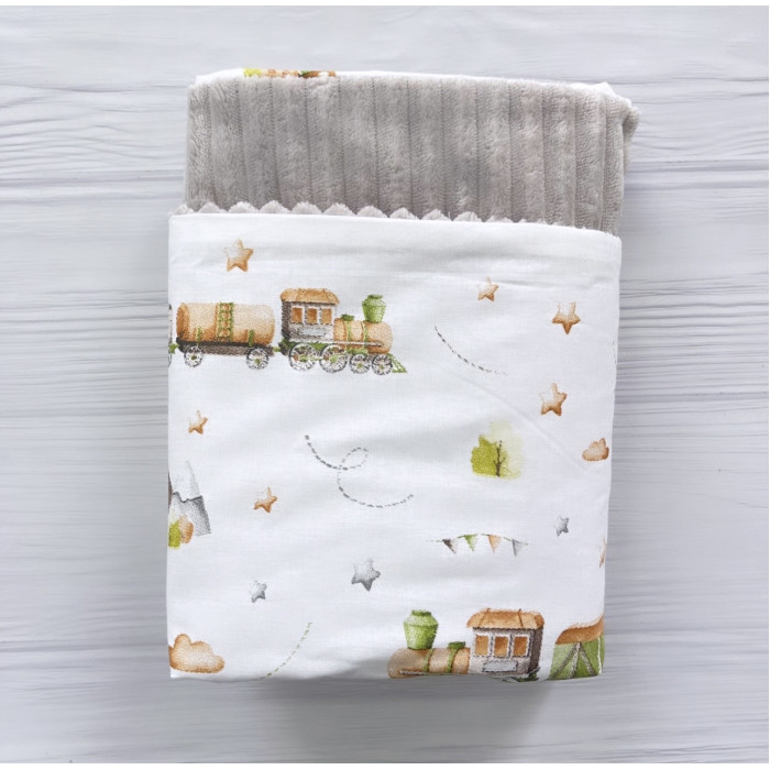 Плед плюш Паровоз Бежевий/ Сірий плюш 100*80