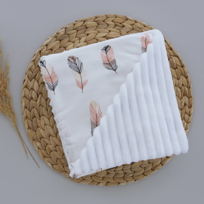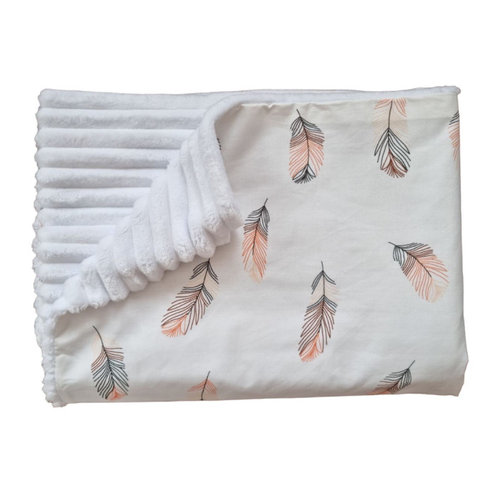 Плед плюш Пір‘їнки Коралові / Білий плюш 100/80