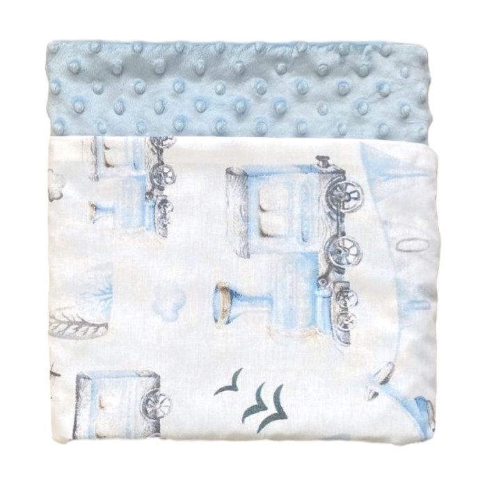 Плед плюш Потяг Блакитний/ Блакитний плюш пупиришка 100/80