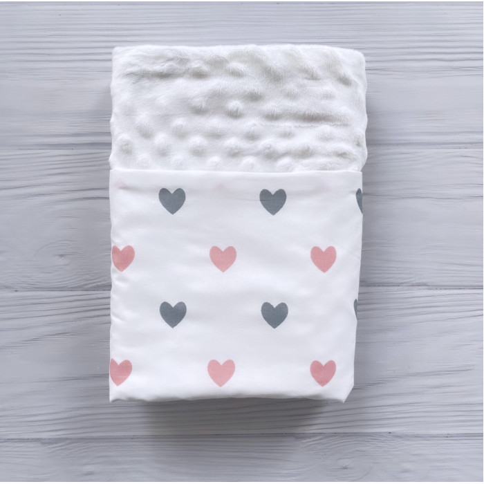 Плед плюш Сердечка Рожевий/ Білий плюш Пупиришка 100*80