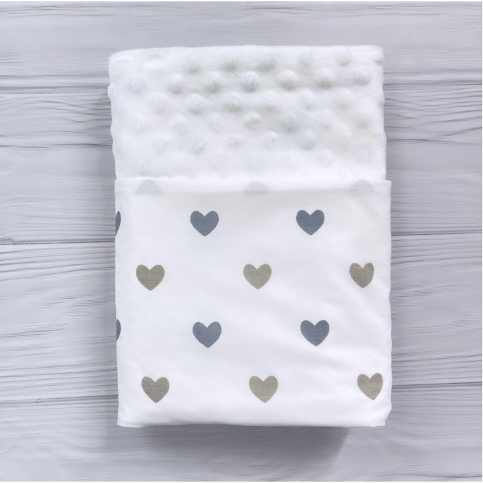 Плед плюш Сердечка Сірий/ Білий плюш Пупиришка 100*80