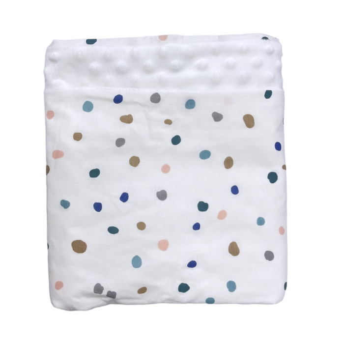 Плед плюш Точки/ Білий плюш пупиришка 100/80