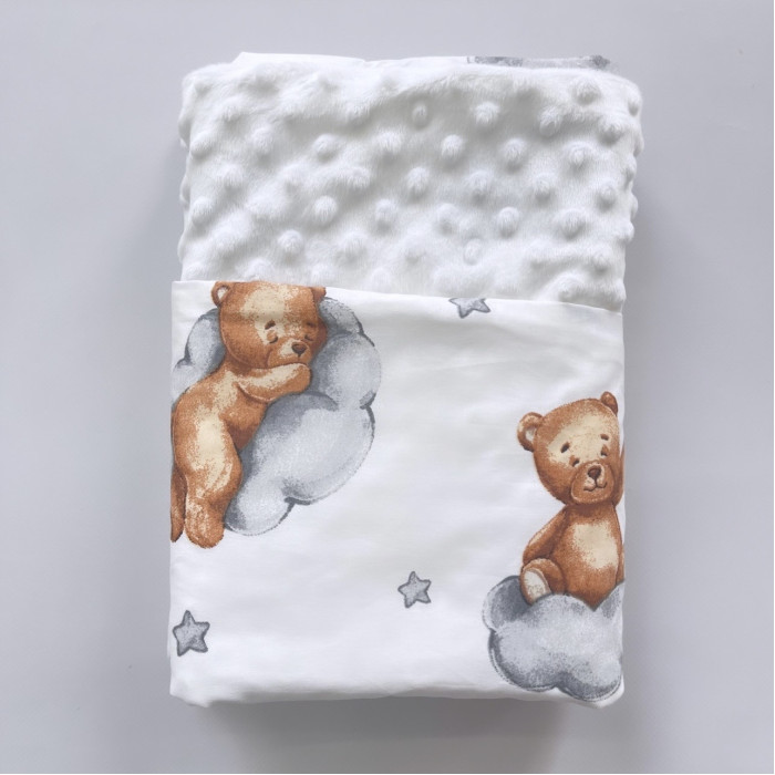 Плед плюш Ведмедик Коричневий на хмаринці / Білий плюш Пупиришка 100*80