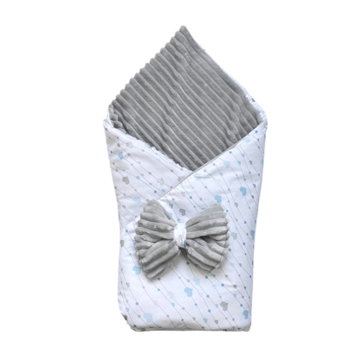 Плед зі зʼємним утепленням та бантом -резинкою Сердечка Блакитний -Сірий (гліттер) /Сірий плюш 90/80