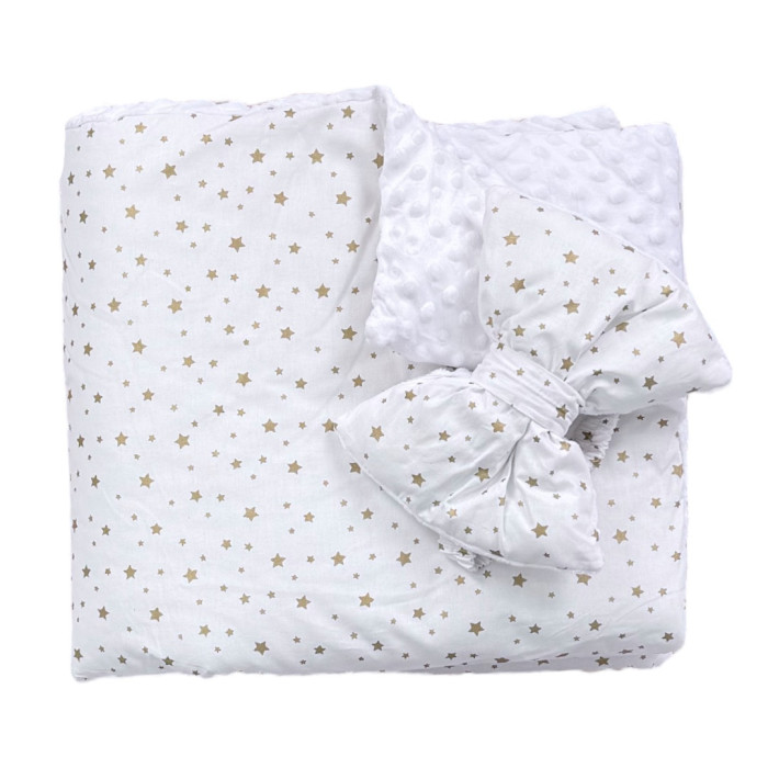 Плед зі зʼємним утепленням та бантом -резинкою Зірки золотий (гліттер) /Білий плюш пупиришка 90/80
