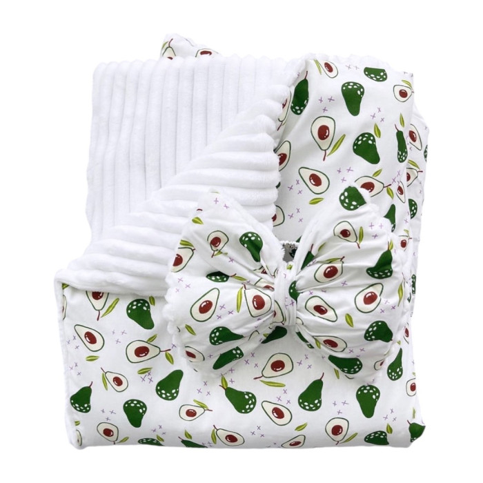 Плед зі з‘ємним утеплювачем та бантом-резинкою Авокадо /Білий плюш 90/80