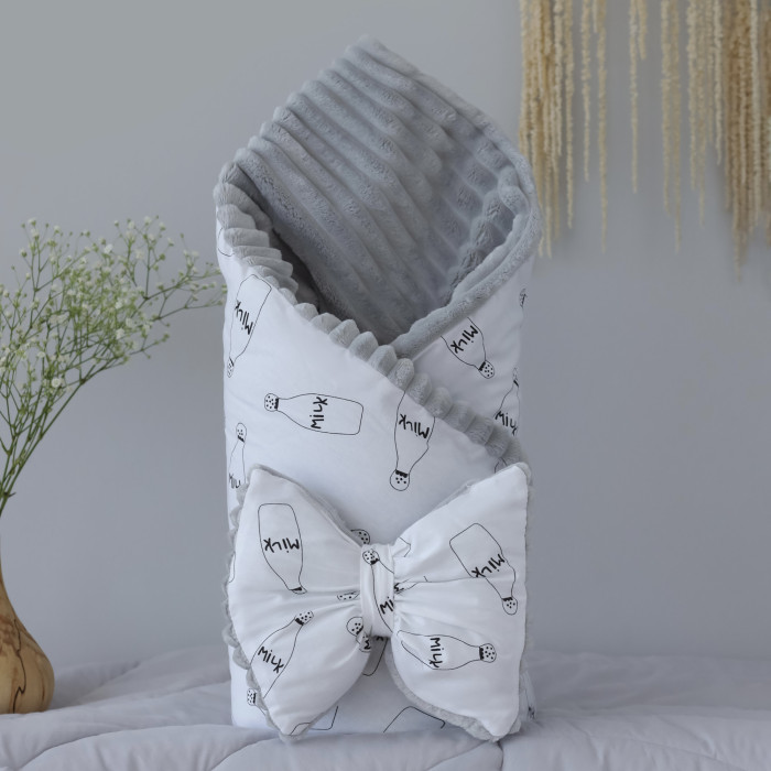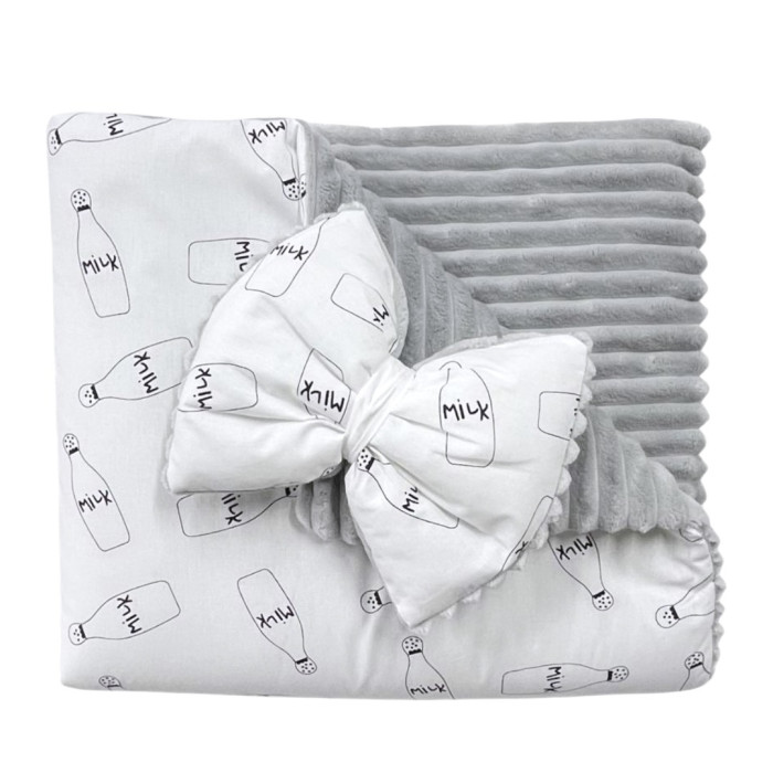Плед зі з‘ємним утеплювачем та бантом-резинкою Мілк / Сірий плюш 90/80