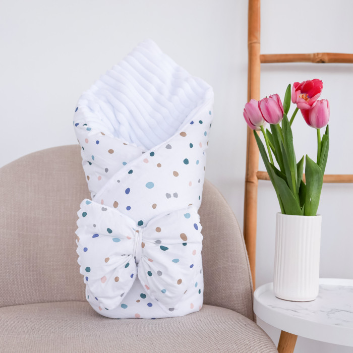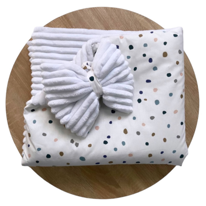 Плед зі з‘ємним утеплювачем та бантом-резинкою Точки/ Білий плюш 90/80