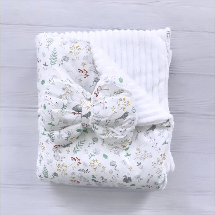 Плед зі з‘ємним утеплювачем та бантом-резинкою Звірята/ Білий плюш 90/80