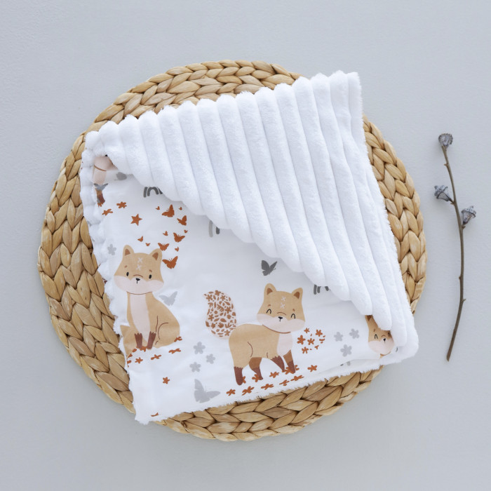 Плед плюш, без утеплення Лисички /Білий плюш 100/80
