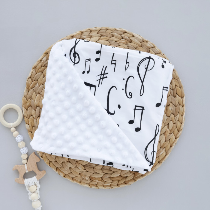 Плед плюш, без утеплення Ноти/ Білий плюш пупиришка 100/80