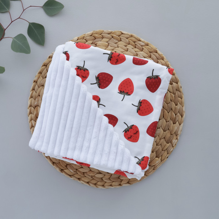 Плед плюш, без утеплення Полуниця/ Білий плюш 100/80