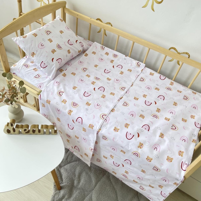 Постільна білизна в ліжко 120/60 Ведмедики Рожевий (підковдра 140*110, наволочка 40*50, простинка 120*60) Бязь Голд
