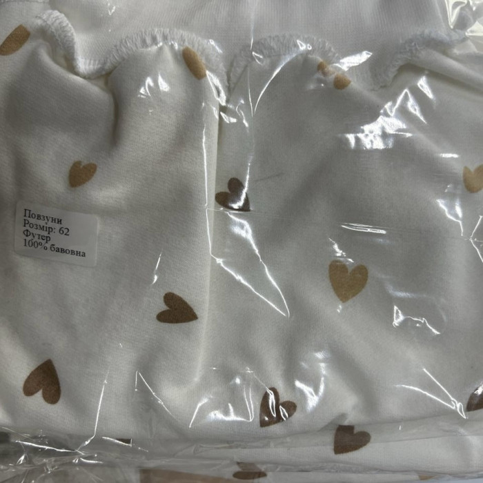 Повзунки Сердечка Бежевий (Футер - з начосом) 62 (1-3міс)