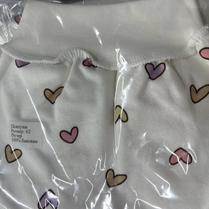 Повзунки Сердечка Фіолетовий (Футер - з начосом) 62 (1-3міс)