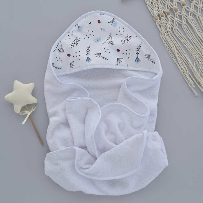 Дитячий рушник з кутиком махровий (100% котон) Квіточки Блакитний 90/80