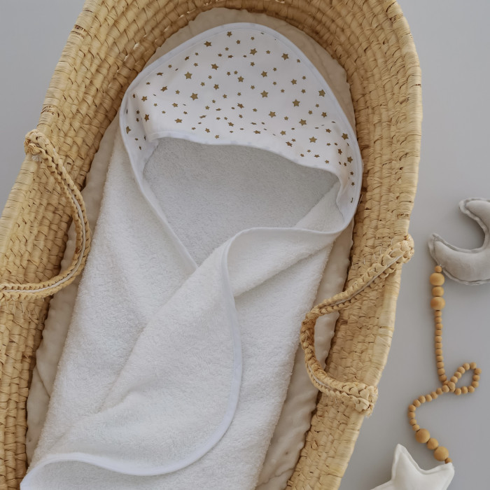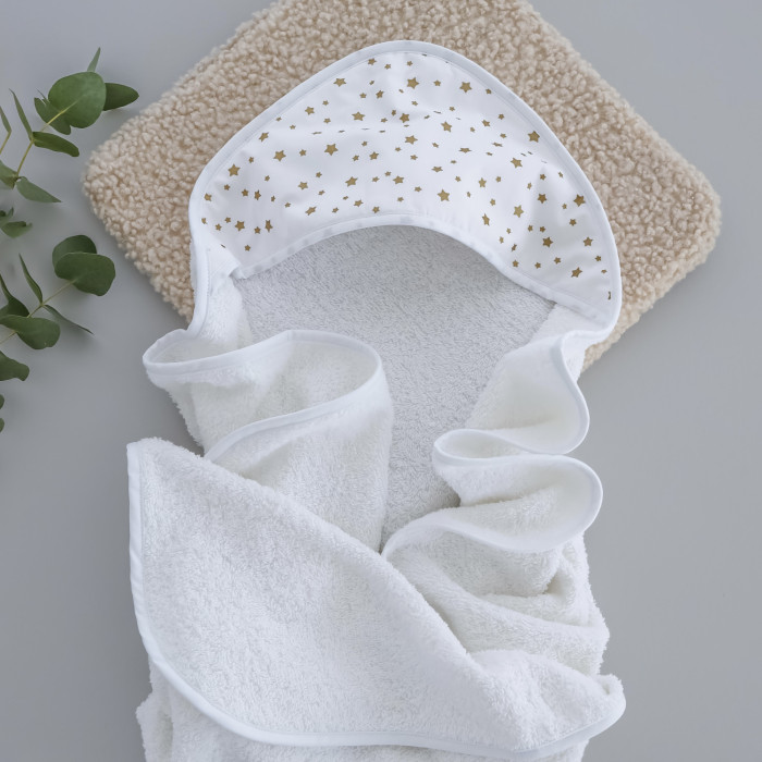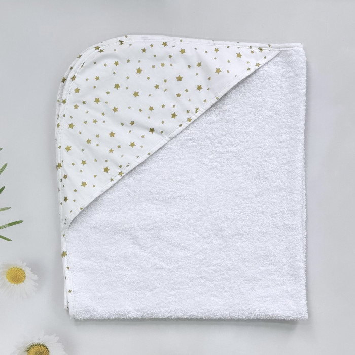 Дитячий рушник з кутиком махровий (100% котон) Зірки Золото (гліттер) 90/80