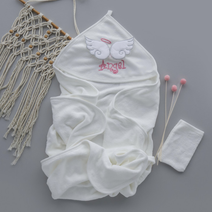 Дитячий рушник з кутиком махровий Ангел Молочний -Рожевий 85/75