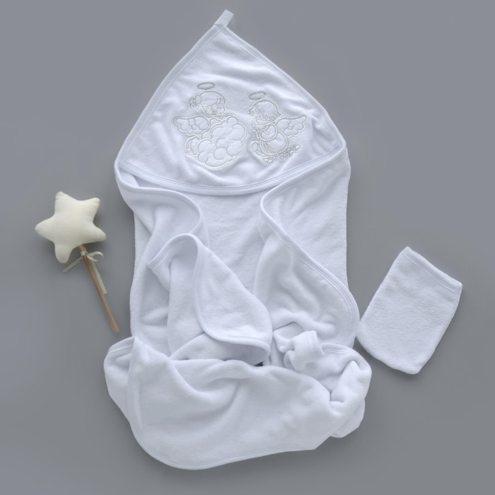 Дитячий рушник з кутиком махровий Ангели Срібний 85/75