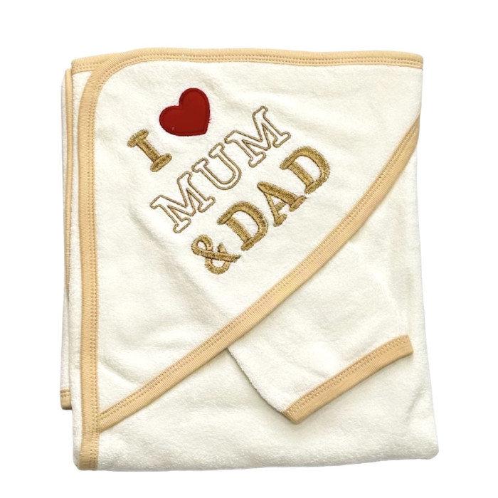 Дитячий рушник з кутиком махровий Мама тато Бежевий 90/85