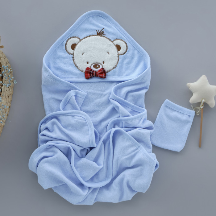 Дитячий рушник з кутиком махровий Ведмедик хлопчик Блакитний