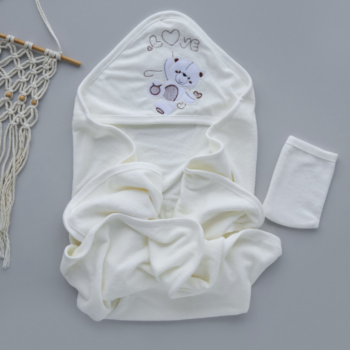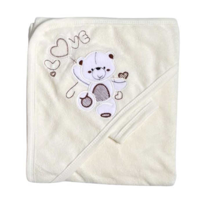 Дитячий рушник з кутиком махровий Ведмедик Love Молочний 90/85