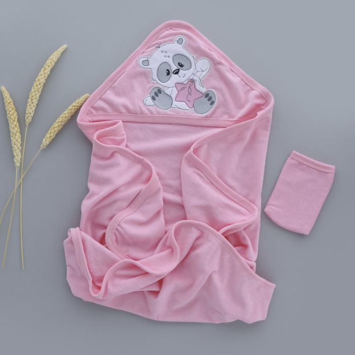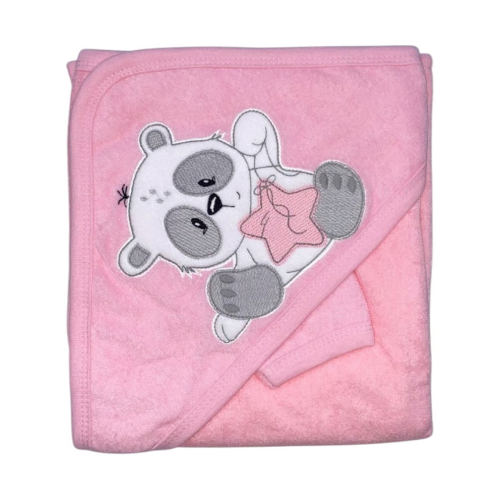Дитячий рушник з кутиком махровий Ведмедик Зірка Рожевий 90/85