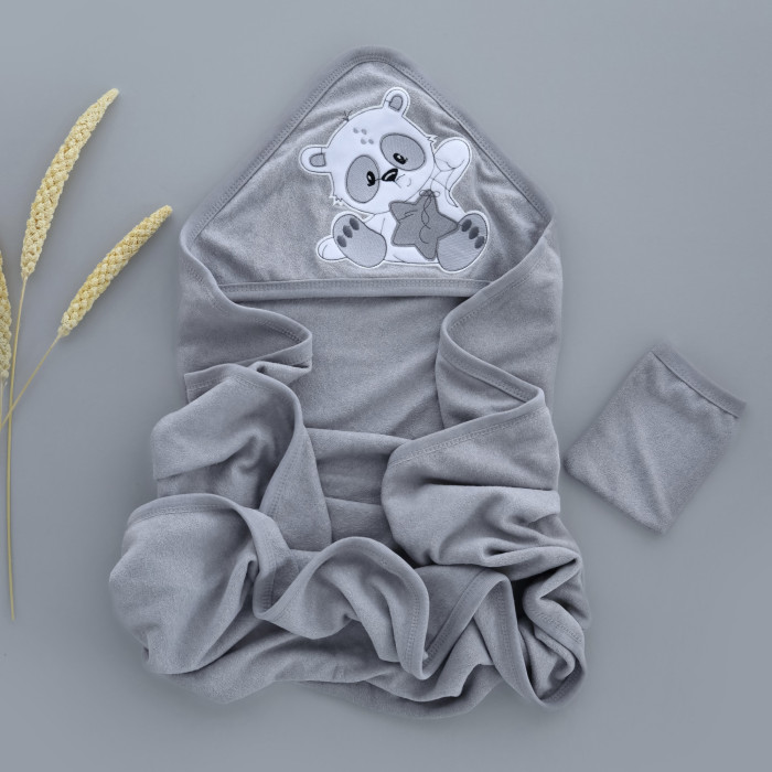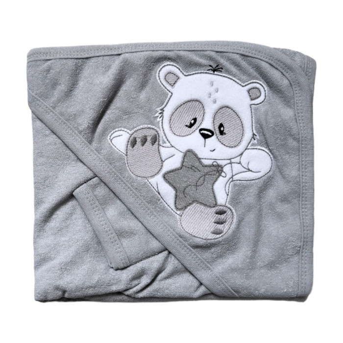 Дитячий рушник з кутиком махровий Ведмедик Зірка Сірий 90/85