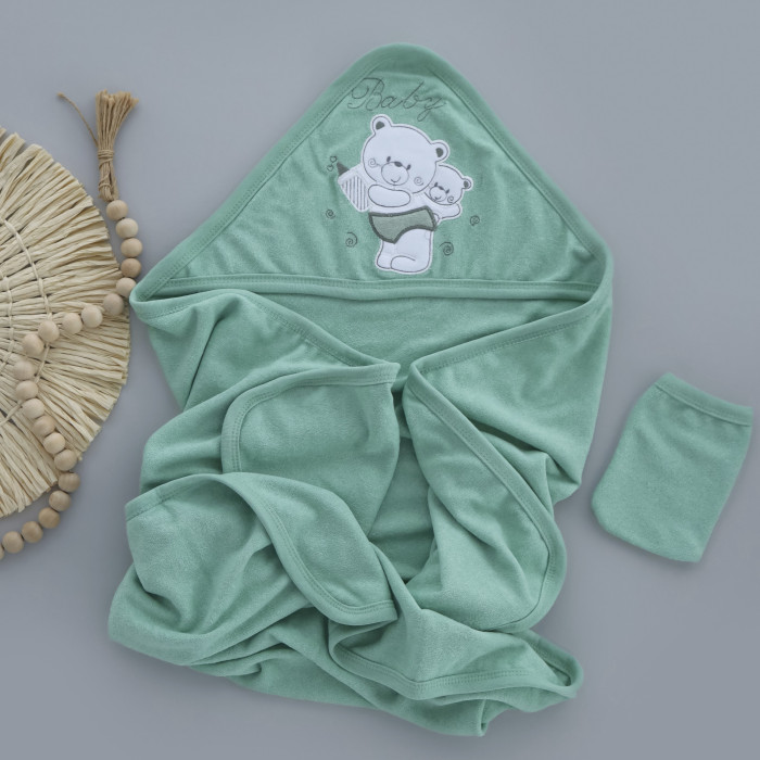 Дитячий рушник з кутиком махровий Ведмедики Оливковий 90/85