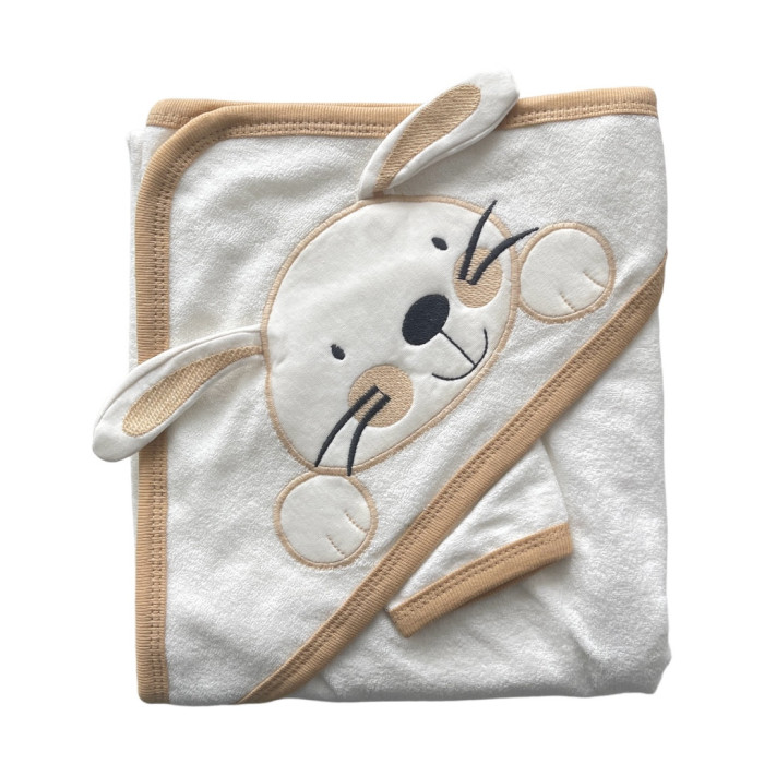 Дитячий рушник з кутиком махровий Зайка Бежевий 90/85