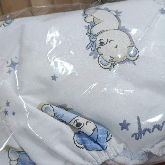 Непромокаюче простирадло на гумці в коляску Ведмедик місяць Блакитний 80/40