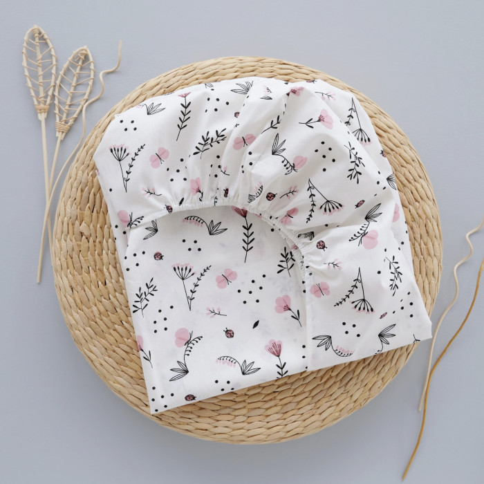 Простинка на гумці в ліжко Квіточки Рожевий 120/60