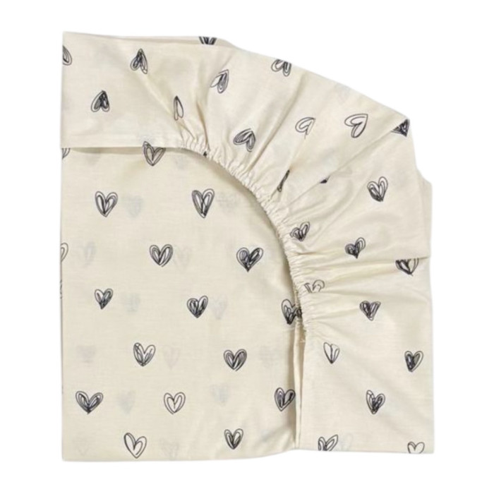 Простинка на гумці в ліжко Сердечка чорні на бежевому 120/60