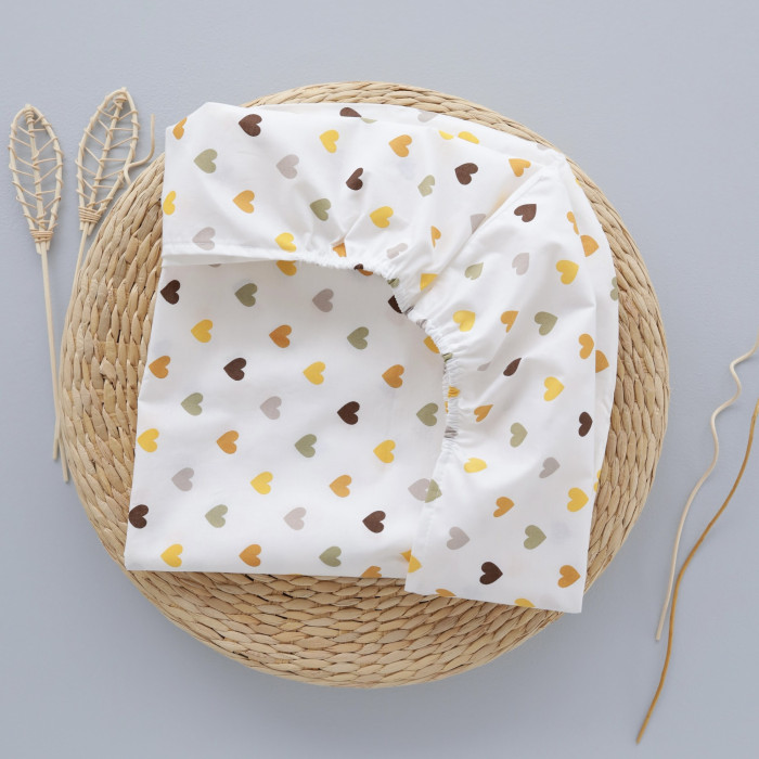 Простинка на гумці в ліжко Сердечка Помаранчевий 120/60