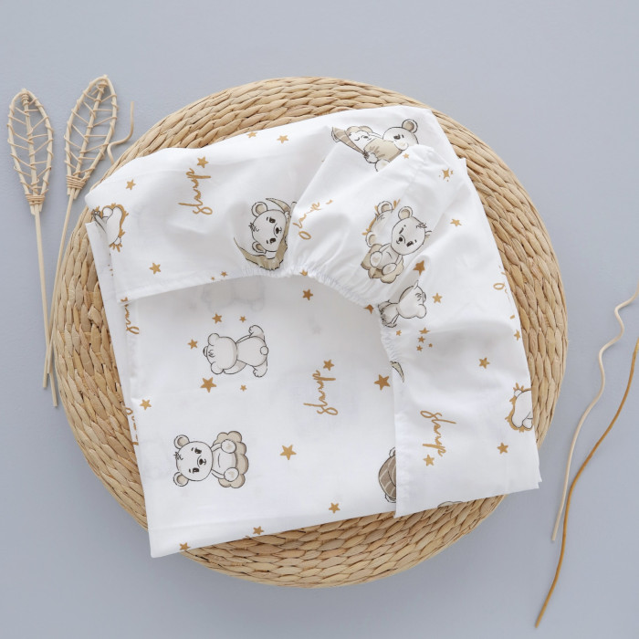 Простинка на гумці в ліжко Ведмедики Місяць Бежевий 120/60