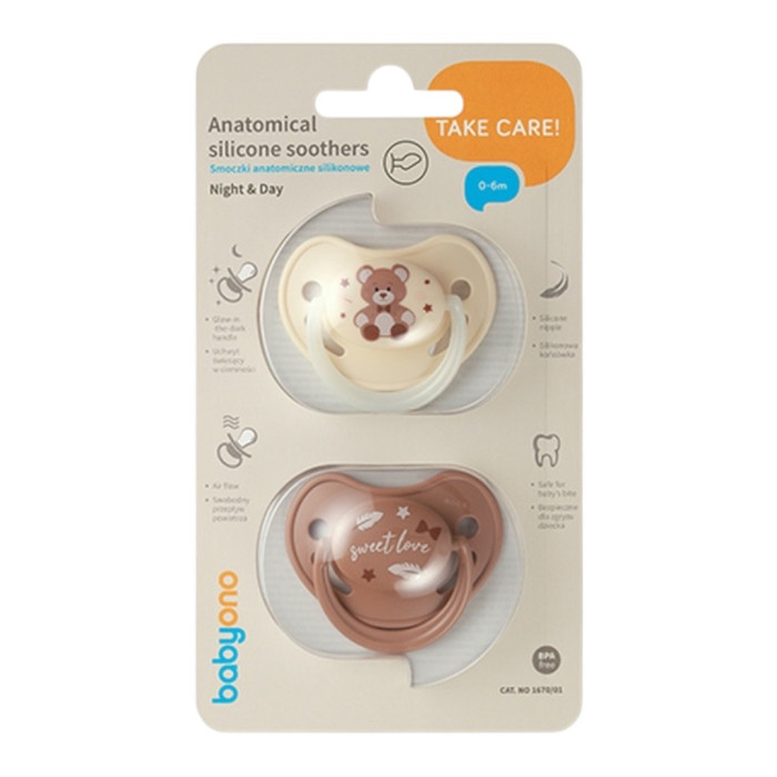 Пустушка анатомічна (силікон) Бежева / Коричнева (0-6міс), BabyOno